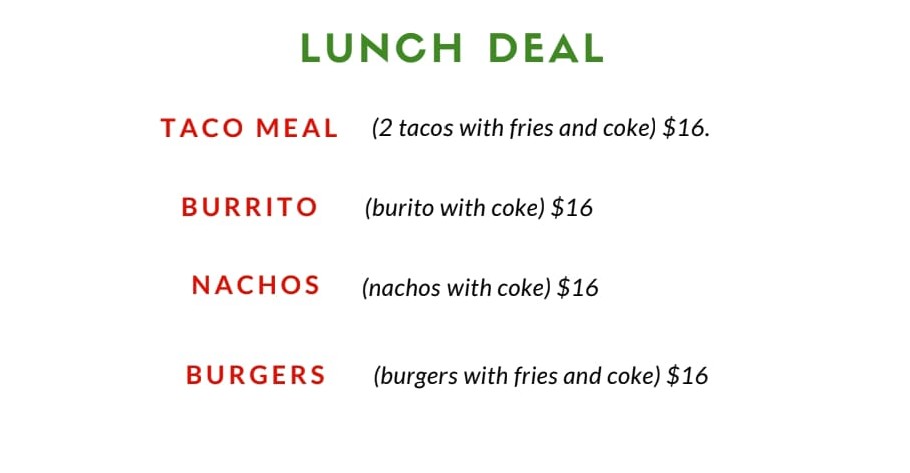 Our menu consists of several victuals to please customer’s taste buds such as Fajita’s, Flan, Tacos and many more as such.